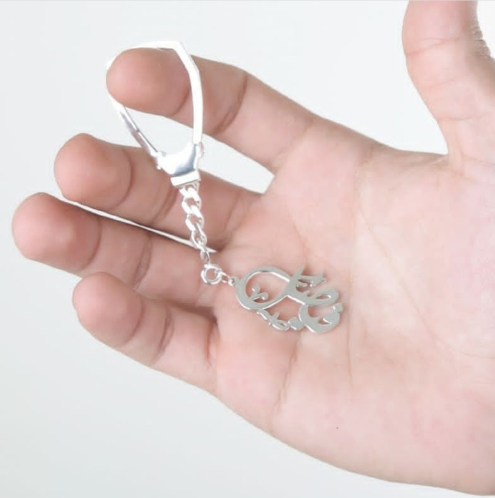 مداليات مفاتيح بالاسم فخم وراقي متوفر بطلاء ذهب أو فضة لا يصدأ مع ضمان سنتين على اللون
